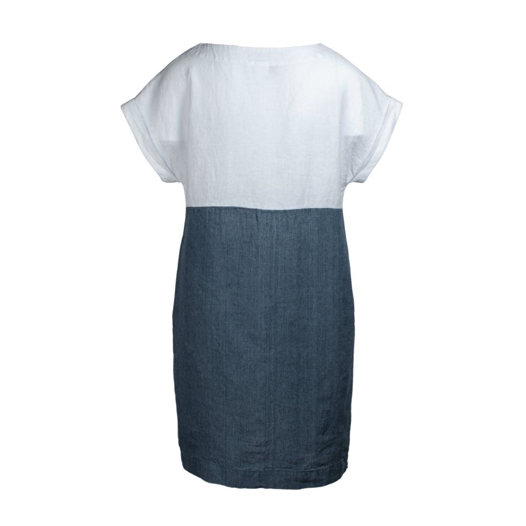 This casual and elegant midi-length dress is crafted from breathable linen. V- neckline decorated with a button and with pockets on sides. Perfect for everyday wear and business casual.
