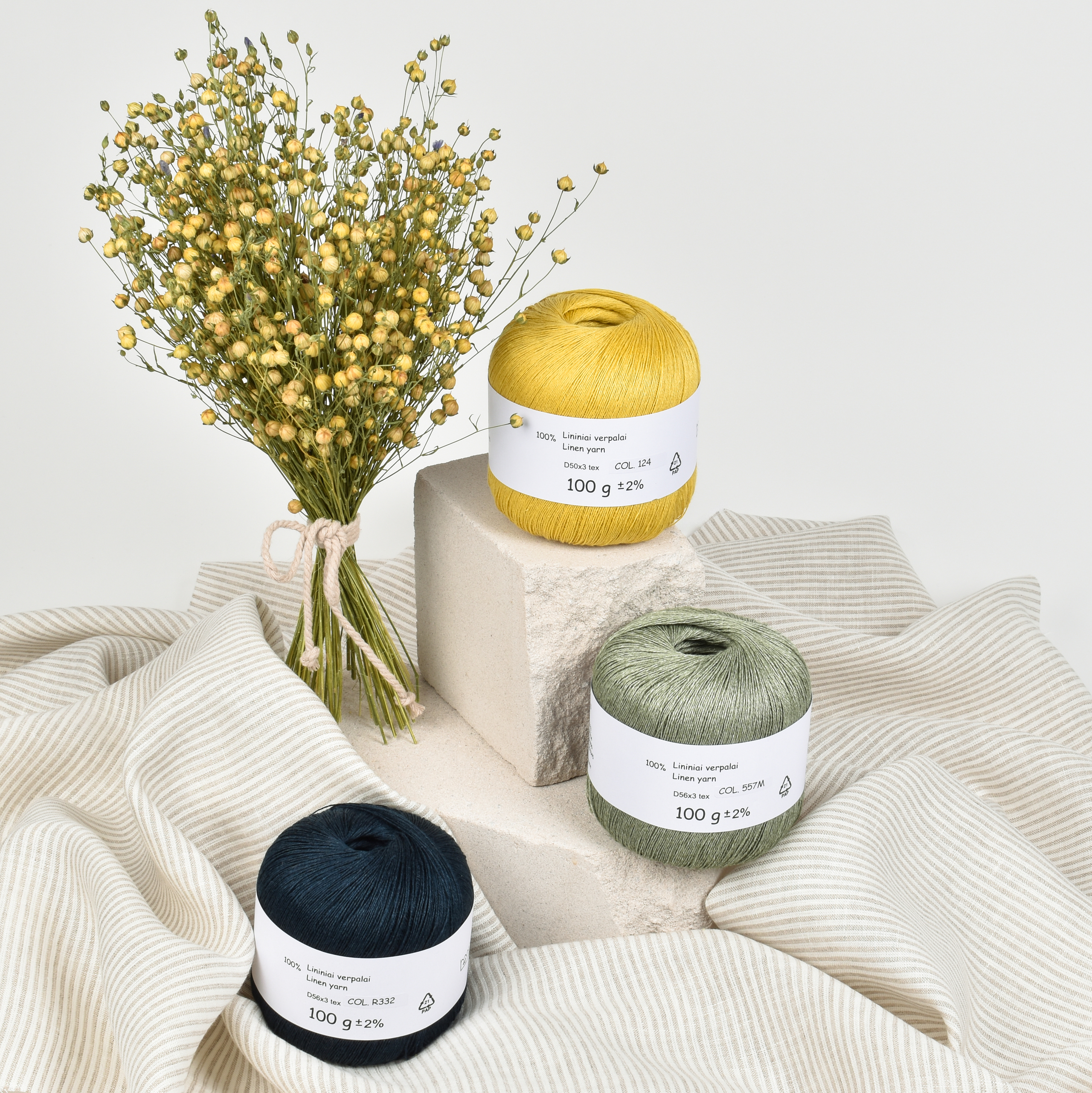 The yarn is twisted from 3 threads. Thickness 50 tex